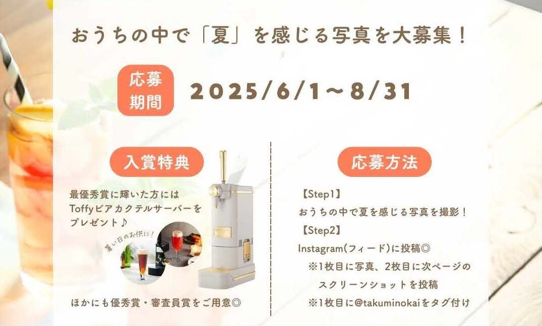 応募には、Instagram「@takuminokai」のフォローとエントリーが必要です。