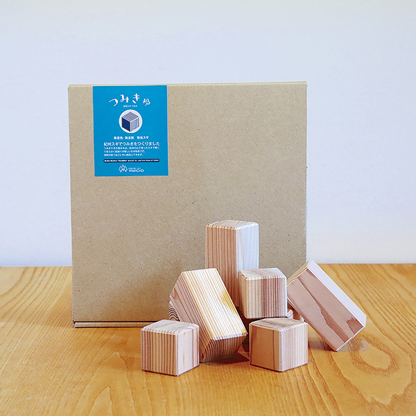 和歌山県より最高品質の木材を提供する材木店(株)山長商店様より、木の国紀州の山で育った無垢のスギの積み木「つみきゅう」をプレゼント