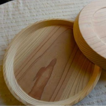 宮城県、栗駒山麓の工場で独自のくんえん木材生産する(株)KURIMOKU様より、耐久性のある建築材を生産した際に発生する端材を活用し作られた「木皿(洗浄可)」をプレゼント